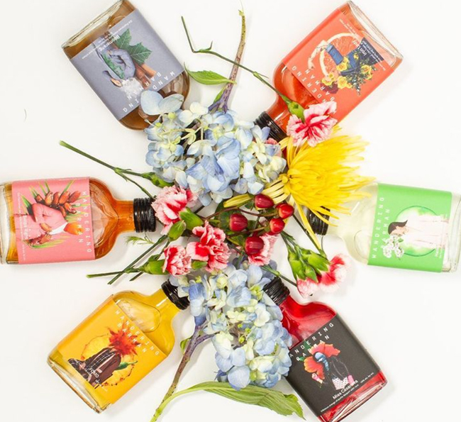 Wandering Barman con sede en Brooklyn, compañía femenina, homenajea a mujeres históricas en sus ilustraciones: Frida Kahlo, Rosie the Riveter, icono cultural que representa a las mujeres trabajadoras de Estados Unidos durante la Segunda Guerra Mundial. Sus bebidas de una sola porción sugieren usos diferentes, además del propio cóctel y las acercan a un público más diverso.