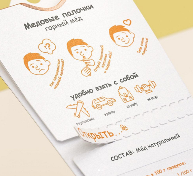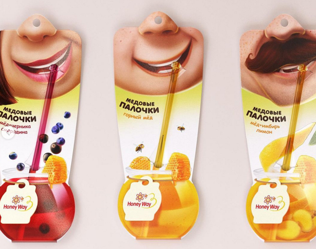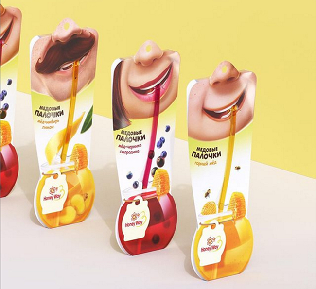 Los Palitos de miel son perfectos como refrigerio, snack, también pueden servir como aderezo en cocina, edulcorante natural para infusiones… El diseño y la imagen por la agencia rusa Commersart con un packaging que no va a pasar desapercibido a base de curiosas ilustraciones, también nos explica como usar el producto en un divertido juego comunicacional.