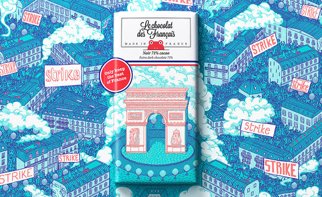 Le Chocolat des Français, ‘la marca de chocolate más francesa’, fabrica chocolate artesanal, orgánico, sin conservantes, sin aceite de palma, su estuchado siempre realizado por pintores, diseñadores, dibujantes, alrededor de los preceptos de la firma: