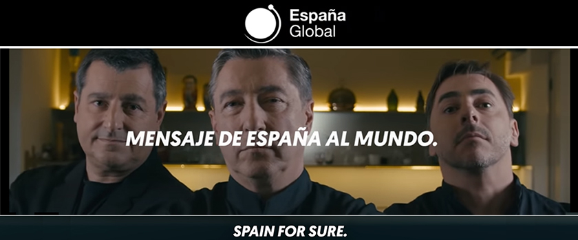 España lanza un mensaje de confianza al mundo, de “país seguro” y cuenta con la imagen de algunos Embajadores Honorarios de la Marca España; puesta en marcha por el Ministerio de Asuntos Exteriores.