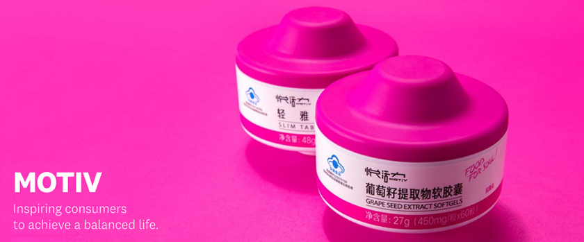 El trabajo realizado por SuperUnion se inspira en ese ‘Equilibrio’ para crear MOTIV y convertir a la compañía de medicinal milenaria en una marca de suplementos de nueva ola; creando un audaz recipiente inspirado en la cerámica tradicional china y en forma de peonza, como metáfora del equilibrio. Además al apilar los envases se crea otra imagen que recrea la estructura de las células, y emula el carácter científico de Motiv.